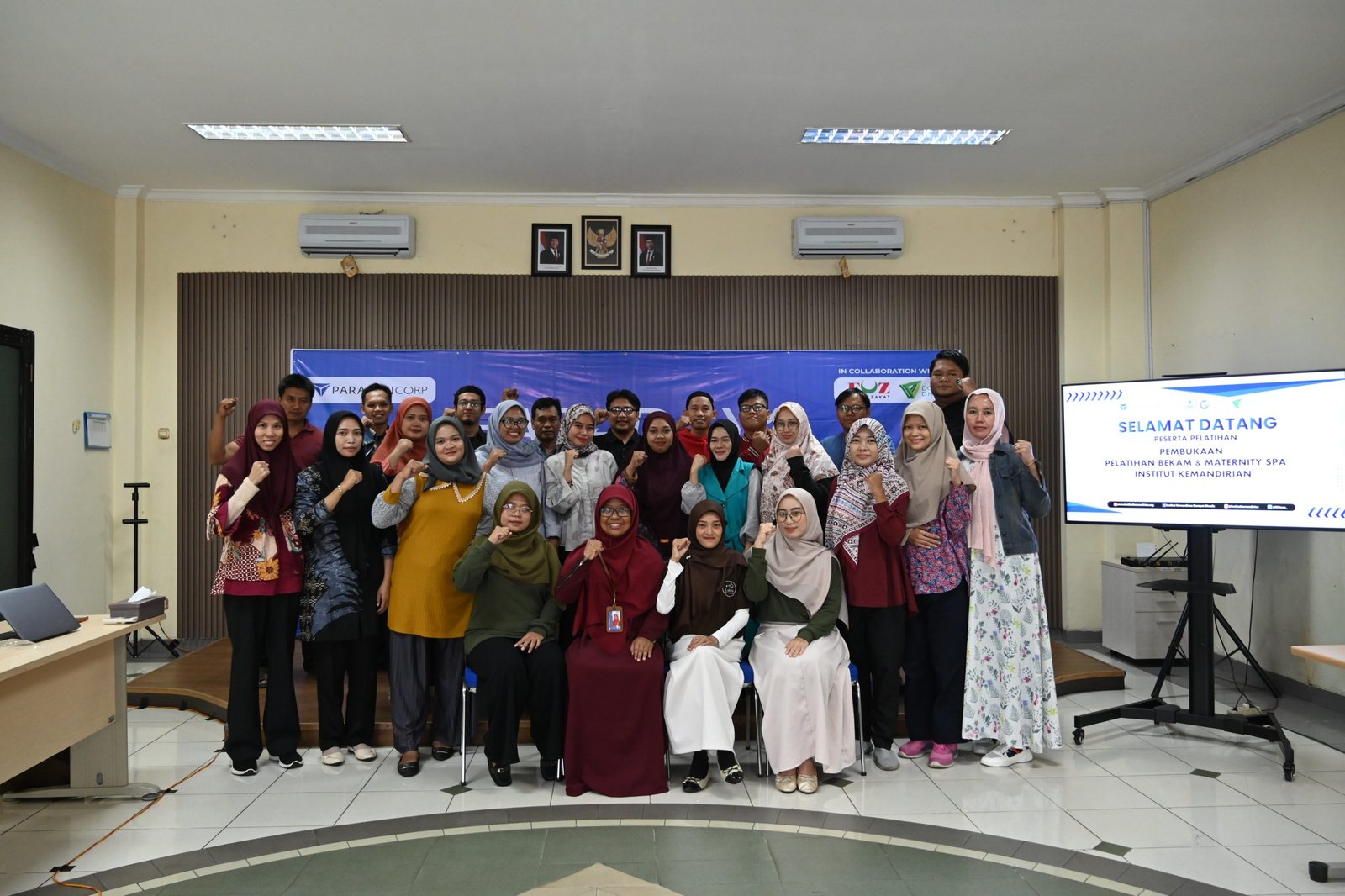 Peserta Pelatihan Maternity Spa & Terapis Bekam Program Kolaborasi Institut Kemandirian dan Paragon dalam kegiatan pembukaan di Kampus Utama Institut Kemandirian, Tangerang, Senin (21/04/2025).