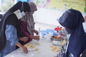 SERPONG- Bertempat di  Khadijah Learning Center (KLC), Institut Kemandirian Dompet Dhuafa bersama dengan PT.Danareksa (Persero), mengadakan pelatihan pengolahan pangan berbasis tepung terigu pada Kamis (14/01). Pelatihan pengolahan pangan ini menyasar pemberdayaan perempuan di sekitar Tangerang Selatan. Pelatihan ini bertujuan untuk memberdayakan para perempuan yang memiliki kemauan untuk mandiri dengan mengasah skill pengolahan pangan, sehingga bisa menjadi bekal memulai atau mengembangkan usaha.