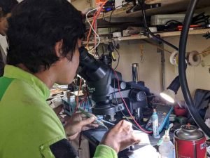 “Jika mengingat kembali ke belakang masa-masa magang dulu saya ingat betul arahan instruktur untuk membawa sebuah handphone rusak yg harus di bawa setiap kali ke tempat magang untuk diperbaiki, ” lanjutnya bercerita