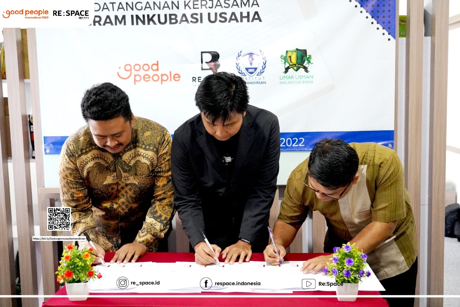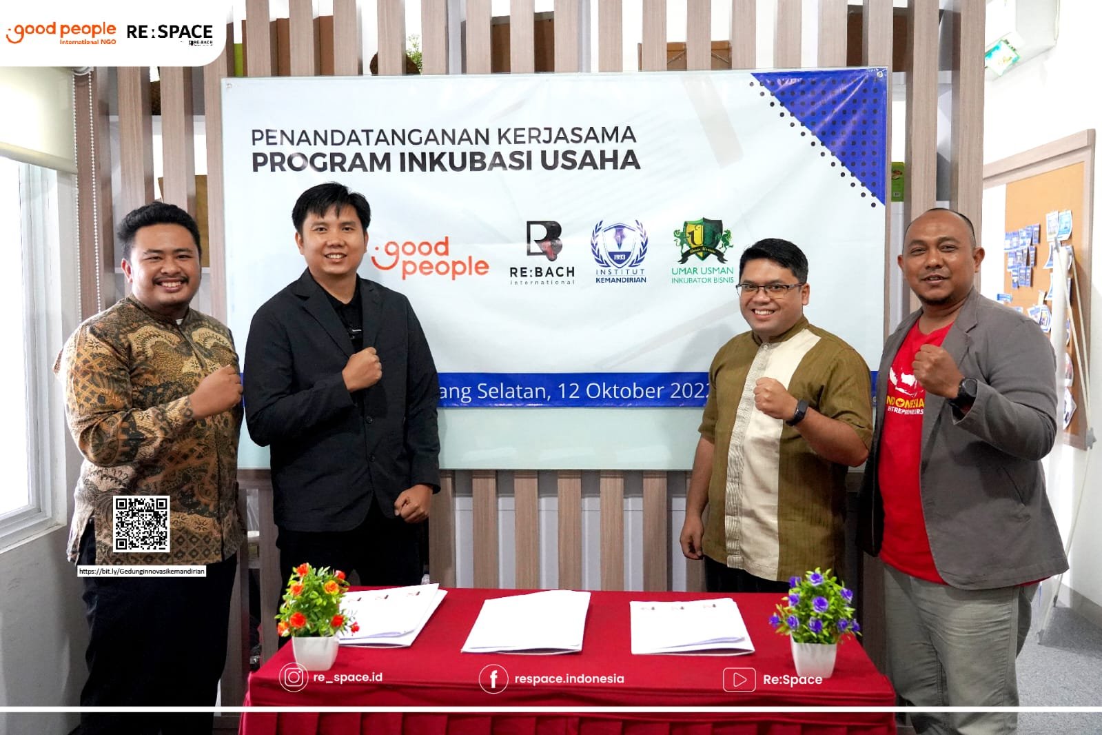 Tangerang Selatan – Good People International NGO melalui ReBach International melangsungkan penandatanganan Memorandum of Understanding (MOU)/ Nota kesepakatan yaitu penandatanganan kerja sama program Inkubasi Usaha bersama Institut Kemandirian dan Inkubator Bisnis Umar Usman.